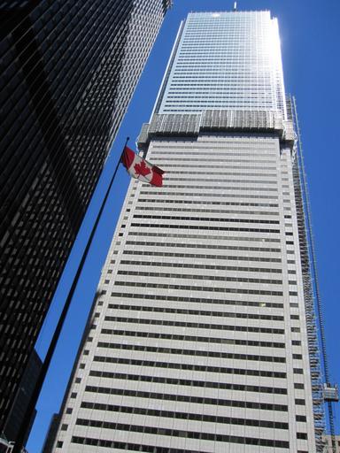 | Keywords: FCP-recladding.jpg First Canadian Place photographed in mid-2011 during the replacement of the original marble cladding bottom with glass and ceramic frit panels top At left the flagpole and Royal Trust Tower later renamed the TD North Tower are part of the Toronto-Dominion Centre via email a friend of mine who prefers to remain anonymous 2011-06 permissionOTRS 2011070210008473 a friend of mine who prefers to remain anonymous First Canadian Place Construction in Toronto June 2011 in Canada 2011 in Toronto Flagpoles in Canada |