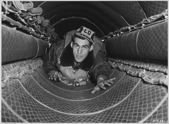Keywords: FEAF BOMBER COMMAND, JAPAN-Combat infantrymen must know how to do a flat crawl - NARA - 542362.tif Scope and content FEAF BOMBER COMMAND JAPAN--Combat infantrymen must know how to do a flat crawl hugging the ground to avoid being hit Combat airmen must also know how to maneuver horizontally only they often do it high in the night skies over North Korea This U S Air force B-29 gunner coming through the 35-foot tunnel connecting forward and rear pressurized compartments on his Superfort is A/2C James J Prater Beaver Creek Drive Powell Tenn Wearing parachute and Mae West life preserver adds to the close sqeeze in negotiating the tunnel which runs through the big aircraft's twin bomb bays Airman Prater flies nine-hour 2 000 mile roundtrip missions from his 98th Bomb Wing base in Japan to attack key Communist targets in North Korea Airman Prater joined the U S Air Force in November 1951 After training in gunnery at five airbases he was assigned recently to Japan for combat duty where his missions are part of the Far East Air Forces' continuing program of blasting Red supplies before they reach General notes 542362 Local identifier 342-FH-4A 31920 Department of Defense Department of the Air Force 09/26/1947 - Still Picture Records Section Special Media Archives Services Division NWCS-S National Archives at College Park 8601 Adelphi Road College Park MD 20740-6001 ca 03/1953 Record group Record Group 342 Records of U S Air Force Commands Activities and Organizations 1900 - 2003 Record group ARC 654 Black and White and Color Photographs of U S Air Force and Predecessor Agencies Activities Facilities and Personnel - World War II and Korean War compiled ca 1940 - ca 1980 documenting the period 1863 - 1953 Series ARC 542351 File unit File unit ARC Variant control numbers Agency-Assigned Identifier NASM 4A 31920<br /> NAIL Control Number NWDNS-342-FH-4A 31920 yes Other versions NARA-cooperation PD-USGov B-29s in the Korean War Males with life jackets Air gunners B-29 Superfortress aircrew 98th Range Wing United States Air Force |