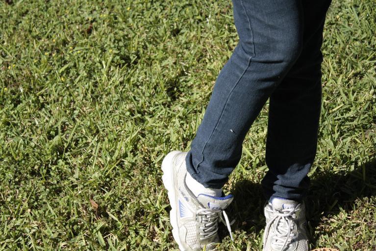 Keywords: feet legs shy shyness jeans jean tennis grass