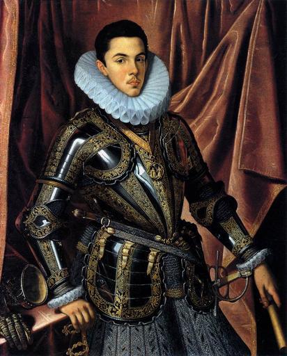 | Keywords: Felipe Manuel, Prince of Savoya.jpg Portrait of Felipe Manuel Prince of Savoya 1586-1605 son of Charles Emmanuel I Duke of Savoy and Infanta Catherine Michelle of Spain daughter of Philip II The artist represents the prince as the heir to the throne in Savoya wearing an armor of Lombard origin and the necklace of the Annunziata Order the highest order of the Kingdom of Savoya c 1604 Oil on canvas size cm 111 5 89 5 Institution Museo de Bellas Artes Bilbao object history credit line This portrait is one of the most significant portraits painted by the artist accession number WGA link 16987 http //www wga hu/art/p/pantoja/savoya jpg http //www wga hu/html/p/pantoja/savoya html PD-old-100 painting portrait Spanish 1551-1600 DEFAULTSORT 1604; Philip Emmanuel of Savoy WGA form painting Recipients of the Order of the Most Holy Annunciation WGA School Spanish WGA time period 1551-1600 Philip Emmanuel Prince of Piedmont Male portrait paintings by Juan Pantoja de la Cruz Paintings in the Bilbao Fine Arts Museum 1604 paintings in Spain 1600s oil on canvas paintings in Spain Portrait 1604 oil on canvas paintings Portrait 1604 portrait paintings Male 17th-century oil portraits of standing men at three-quarter length wearing armour 17th-century portrait paintings in Spain Early Modern period Files uploaded by Shakko from various sources Portraits holding baton Portraits with swords Red drapery in portrait paintings Ruffs in art male Tables in portrait paintings |