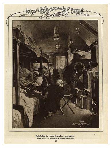 Keywords: Felix Schwormstadt - Deutsch Amerika - Schwormstadt 01.jpg in the picture Creator Felix Schwormstädt PD-old Felix Schwormstädt Ambulance trains of Germany Casualties of World War I Priests in art Train interiors People on trains Ambulances in the 1910s |