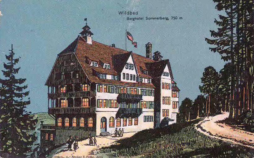 Keywords: Felle Wildbad Sommerberg Hotel.jpg Ansichtskarte von Eugen Felle; Technoseum Landesmuseum für Technik und Arbeit Mannheim <br />Motiv Bad Wildbad Hotel am Sommerberg http //www technoseum de/ early 20th century Creator Eugen Felle PD-old-auto 1934 Postcards of Bad Wildbad Demolished buildings in Bad Wildbad Eugen Felle Sommerberg Bad Wildbad Hotels in Bad Wildbad low quality |