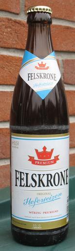 Keywords: Felskrone Hefeweizen.jpg en A bottle of Felskrone Hefeweizen bier own Miguel Andrade 2013-03-09 Beer bottles brown glass Beers of North Rhine-Westphalia Cc-zero
