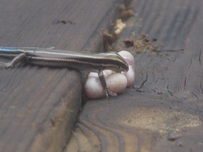 Keywords: Female Skink with Eggs.JPG en Mother skink moving her eggs closer together own Boomtastic 2009-07-12 cc-zero Plestiodon fasciatus