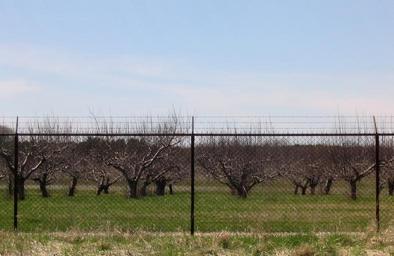 Keywords: Fence 400px.jpg A fence in Urbana IL own 2004-04-05 Dori Orchards Photographs by Dori Wire net fences Agricultural fences Fences in Urbana Illinois