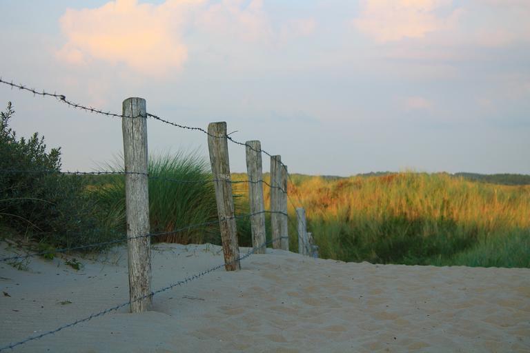 Keywords: fence barbed wire sand dune summer north sea