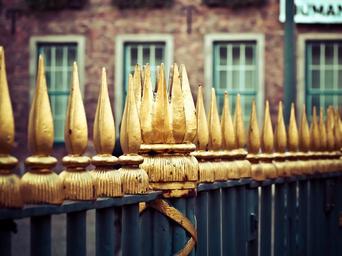 Keywords: fence metal iron grid barbed wire limit gold pointed close
