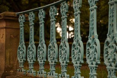 Keywords: fence old turquoise metal close iron construction wrought iron