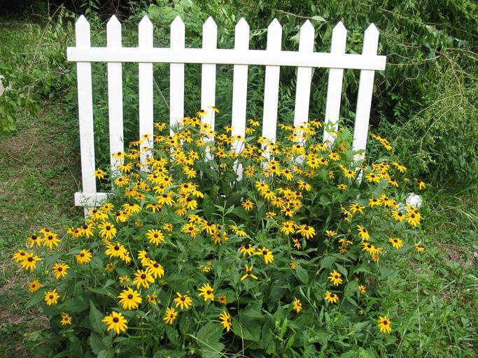 Keywords: fence picket fence flowers cone flowers homestead garden white picket fence