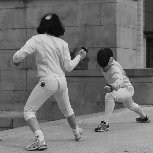 Keywords: fencing sports sword clothing martial arts mask attack man woman people duel fighting