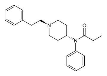 | Keywords: Fentanyl-2D-skeletal-A.png Skeletal formula of the fentanyl molecule in the crystal structure of fentanyl citrate-toluene solvate X-ray diffraction data from cite journal Crystal and molecular structure ofN-1- 2-phenylethyl -4-piperidinylium-N-phenylpropanamide fentanyl citrate-toluene solvate O M Peeters N M Blaton C J De Ranter A M Van Herk and K Goubitz Journal of Chemical Crystallography 1979 153-161 10 1007/BF01262807 Own 2008-04-26 Ben Mills Benjah-bmm27 Images by Ben Mills Fentanyl |
