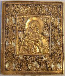 Keywords: Feodorovskaya сast copper icon.jpeg Феодо овская икона Божией ате и с Деисиусом и святыми на полях Россия меднолитая ельефная икона с цветными эмалями XIX в 14 x 11 9 cм Частное соб ание http //www cirota ru/forum/view php subj 53563 order pg 47 century 19 Author PD-Art Feodorovskaya