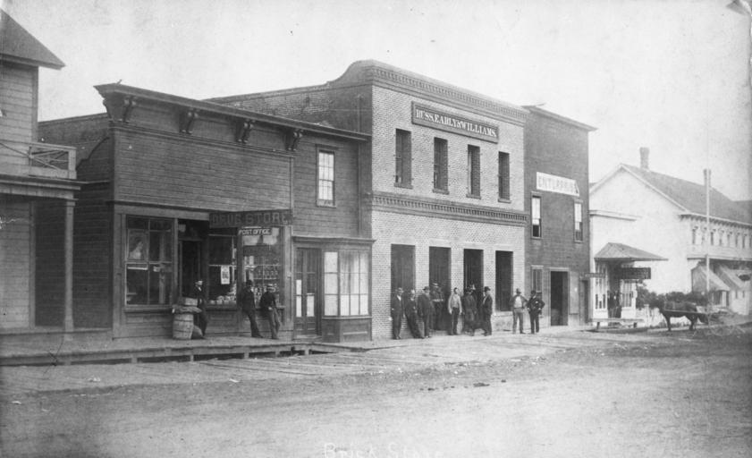 | Keywords: Ferndale-Russ Early & Williams Brick Store 1896.jpg Ferndale California circa 1896 The porch barely seen at left is the Ivanhoe Hotel followed by the Drug Store/Post Office then the Russ Early Williams Brick store 339 Main next the Ferndale Enterprise then the stationary store which would later be owned by Peter Canepa and the Gilt Edge Hotel building with the pitched roof behind the horse at far right of image 1896 Humboldt State University Library Palmquist Collection Photo ID 2003 01 0223 http //library humboldt edu/humco/holdings/collection_images/palmquist/large/2003010223 jpg Peter Matthew Canepa Australia 1867 - Ferndale 1939 other versions 40 575892 -124 264643 PD-old-70-1923 Uploaded with UploadWizard Main Street Ferndale California Buildings in Ferndale California |