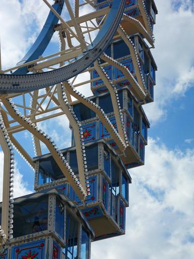 Keywords: ferris wheel amusement park leisure park attraction manege nacelle height blue sky attractive festival wheel structure metal