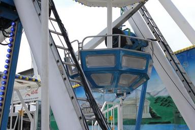 Keywords: ferris wheel cart close-up wheel ferris fair ride carnival amusement blue white carnival rides fun happiness leisure fairground