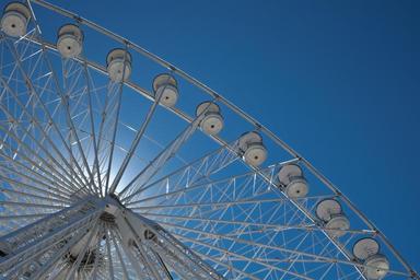 Keywords: ferris wheel fair fun amusement entertainment round sky carousel attraction blue high childhood sun