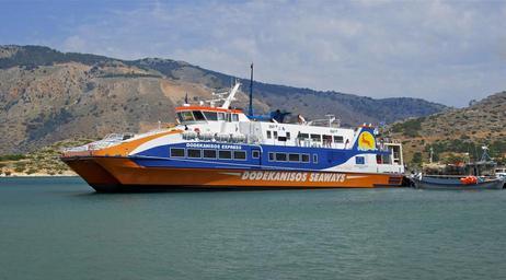 Keywords: ship ferry Dodekanisos Express high speed catamaran harbour Panormitis Symi Island Greece