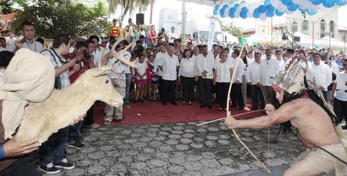 Keywords: outdoor Presidente Salvador Sánchez Cerén observa bailes típicos. Presidente Salvador Sánchez Cerén observa bailes típicos.