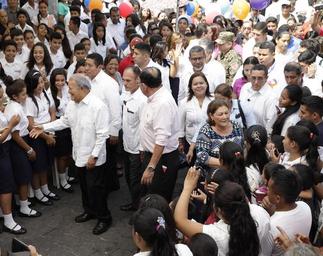 Keywords: people crowd outdoor Pareja Presidencial saluda a asistentes al evento. Pareja Presidencial saluda a asistentes al evento.