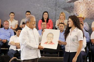 Keywords: Presidente Salvador Sánchez Céren en San Ignacio , recibe obsequio. Presidente Salvador Sánchez Céren en San Ignacio , recibe obsequio.