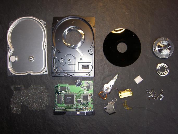 | Keywords: Festplatte.JPG de Festplatte 8GB in ihre kompletten Einzelteile zerlegt en Hard disk 8GB seperated into its individual parts es Disco duro de 8GB separado en sus componentes individuales 2006-02-18 own assumed Rednammoc~commonswiki 3 5 hard disks Disassembled hard disks Hard disk heads Hard disk motors ImageNote 1 119 701 102 94 2272 1704 2 Breather with filter ImageNoteEnd 1 ImageNote 2 679 659 94 82 2272 1704 2 Filter mount ImageNoteEnd 2 ImageNote 3 1704 954 131 125 2272 1704 2 Filter ImageNoteEnd 3 ImageNote 4 1488 895 54 62 2272 1704 2 Heads ImageNoteEnd 4 ImageNote 5 1352 1110 43 54 2272 1704 2 Actuator bearing ImageNoteEnd 5 ImageNote 6 866 747 43 43 2272 1704 2 Actuator pin ImageNoteEnd 6 ImageNote 7 1295 1306 216 148 2272 1704 2 Actuator neodym permanent magnet ImageNoteEnd 7 ImageNote 8 690 1394 293 77 2272 1704 2 IDE/PATA interface ImageNoteEnd 8 ImageNote 9 1000 1406 77 68 2272 1704 2 Jumper pins ImageNoteEnd 9 ImageNote 10 1085 1400 136 85 2272 1704 2 Powersupply connector +5V GND GND +12V ImageNoteEnd 10 ImageNote 11 1522 1136 173 102 2272 1704 2 Head and actuator connector ImageNoteEnd 11 ImageNote 12 1045 1323 91 43 2272 1704 2 Head and actuator connector ImageNoteEnd 12 ImageNote 13 1028 809 122 85 2272 1704 2 Head and actuator connector notch ImageNoteEnd 13 ImageNote 14 824 1198 128 131 2272 1704 2 controller ImageNoteEnd 14 ImageNote 15 721 1201 80 125 2272 1704 2 cache RAM ImageNoteEnd 15 ImageNote 16 1096 1079 60 62 2272 1704 2 motor driver ImageNoteEnd 16 ImageNote 17 1045 1201 88 91 2272 1704 2 head signal driver ImageNoteEnd 17 ImageNote 18 937 1005 108 99 2272 1704 2 motor connector ImageNoteEnd 18 ImageNote 19 1957 454 264 295 2272 1704 2 disk bearing with motor inside ImageNoteEnd 19 ImageNote 20 1315 346 488 503 2272 1704 2 disk storing magnetic data ImageNoteEnd 20 ImageNote 21 1406 1125 28 60 2272 1704 2 head signal driver / amplifier ImageNoteEnd 21 ImageNote 22 761 1085 99 85 2272 1704 2 firmware flashROM ImageNoteEnd 22 ImageNote 23 974 1252 68 82 2272 1704 2 actuator driver and voltage regulator ImageNoteEnd 23 ImageNote 24 1991 795 173 182 2272 1704 2 disk mount ImageNoteEnd 24 |