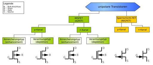 Keywords: FET-Typen (mit Schaltbildern).svg en Overview of field-effect transistor types; with symbols DIN de à bersicht von Feldeffekttransistortypen mit zugehörigen Schaltzeichen DIN own Cepheiden 2008-06-14 Field-effect Transistors DIN standards