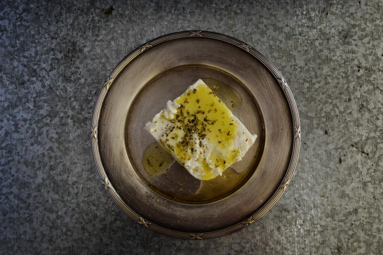Keywords: feta cheese olive oil olive oregano plate metallic plate mystic light food photography food healthy meal appetizer cuisine lunch greek snack dish white mediterranean diet goat tasty organic herbs