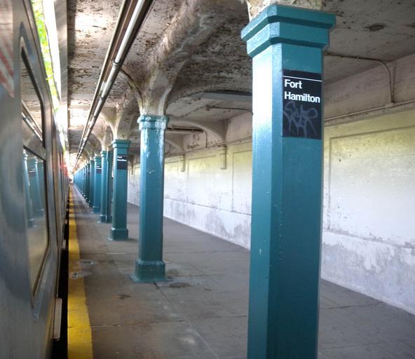 Keywords: FHP plat Seabeach BMT jeh.JPG en Looking south along southbound platform at en Fort Hamilton Parkway BMT Sea Beach Line station platform Own Jim henderson 2009-05-20 40 37 54 3 N 74 0 22 W heading S Fort Hamilton Parkway BMT Sea Beach Line