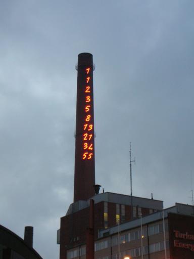 | Keywords: Fibonacci.JPG 60 26 20 5 N 22 14 26 E type landmark Fibonaccin lukusarja Turku Energian Linnankadun voimalaitoksen savupiipussa Fibonacci sequence 1-55 by Mario Merz in Linnankatau power plant chimney in Turku Finland Own 2006-02-09 Kalajoki IX District Turku Mario Merz Fibonacci numbers Buildings in Turku Chimneys in Finland Coal-fired power plants in Finland |