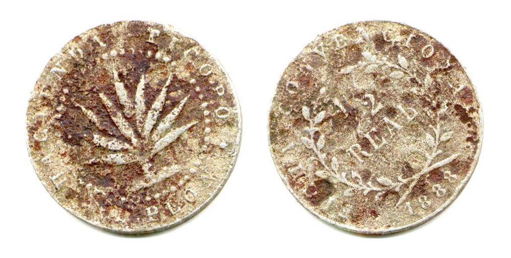 Keywords: Ficha por medio real de la Hacienda Ticopó, Yucatán de 1888 (01)(anverso y reverso).jpg es Ficha por medio real de la Hacienda Ticopó Yucatán de 1888 2014-05-05 11 00 55 own Inri PD-Mexico cc-zero Coins of Mexico Uploaded with UploadWizard