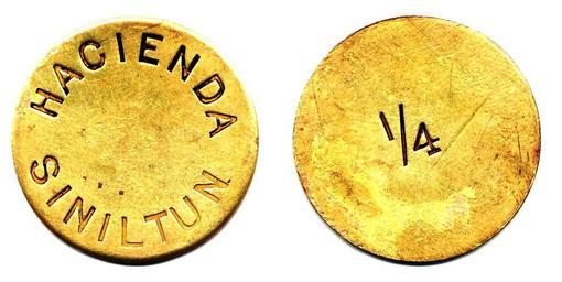 Ficha por un cuarto de real de la Hacienda Siniltún, Yucatán (anverso y reverso).jpg (1467x737)
