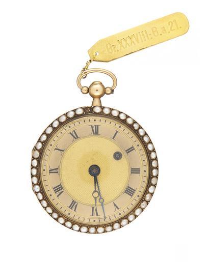 | Keywords: Fickur, 1800 cirka - Hallwylska museet - 98901.tif LSH artwork sv Boett av guld med emalj och orientaliska pärlor verk med s k spindelgång Bottenskal svagt konvext löst utan scharner På skalet ett klöverbladsmönster av pärlor på snedrutad botten av mörkblå genomskinlig translucide emalj med ett uppåtriktat blad i varje ruta varje blad med tre djupt i emaljen infattade pärlor och skaft i vit täckemalj samt begränsat av en smal guldrand i korsningarna mellan rutorna en liten pärla av röd genomskinlig emalj Däromkring en bård varpå i guld mot ljusblå botten i täckemalj parvis längdställda korta streck och runda prickar mellan två smala kantränder Kring ytterkanten en rad av fyrtiosex pärlor fattade i faden och med avdeckningar; kring sidokanten en smal käl Glasram med svagt konvext glas och i dekor som bottenskalets ytterkant samt med en rad av fyrtiofyra pärlor<br/>Gåva från kungen till grevinnan Christina Maria Sommerhjelm<br/>lefi 2015-08-12 original caption Fickur 1800 cirka <br/> Nyckelord Fickur Ur Klocka Urtavla Föremålsbild ca 1800 size cm 9 etui g 33 3 size cm 3 8 size cm 7 1 etui size cm 2 3 etui g 39 3 etui HWY Det Glittrar prel till 30 aug 2015 2014-2015 Livrustkammaren place of origin FR original filename hm_dig14099 16127 inventory number HWY XXXVIII G a 21 98901 CC-BY-SA Erik Lernestål <gallery caption Different images of same object > File Boett från 1800 cirka - Hallwylska museet - 98902 tif </gallery> Watches Accessories Pocket watches Erik Lernestål Media contributed by LSH dim-with multiple size templates Media contributed by LSH unmatched keyword Media contributed by LSH 2015-11 |