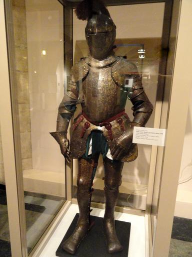 | Keywords: Field armor from a garniture, Pompeo della Cesa, Milan, circa 1590 - Higgins Armory Museum - DSC05638.JPG Exhibit in the Higgins Armory Museum 100 Barber Avenue Worcester Massachusetts USA The museum permitted photography without any restriction both in writing and when I asked verbally I took this photograph 2011-09-24 11 59 21 Daderot Public domain Armor in the Higgins Armory Museum | ||||