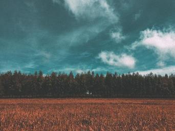 Keywords: field crops agriculture nature landscape trees forest rural countryside blue sky clouds