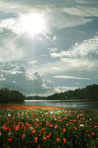 Keywords: field flower nature spring lake blue sky beautiful manipulation