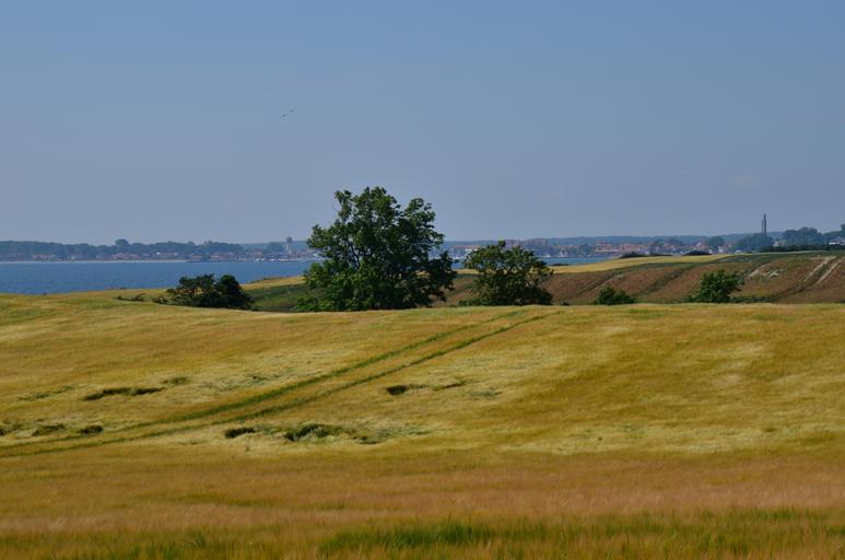 Keywords: field golden wheat coast summer sun blue sky holiday summer holiday denmark baltic mood nature landscape summer sun cereals rural