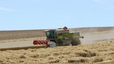 Keywords: field landscape sky agriculture harvest grass rural blue hay haying harvester thresher cereals work in the fields