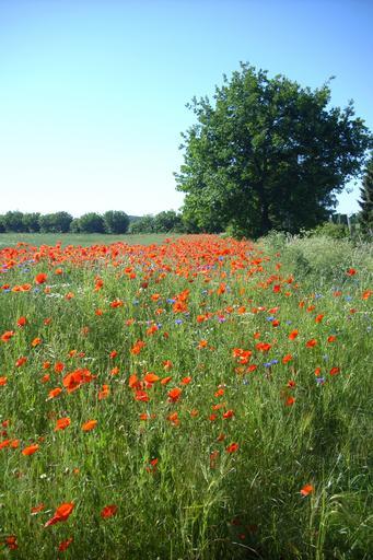 Keywords: field of rapeseeds poppies edge of field summer poppy nature