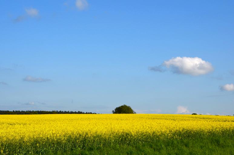 Keywords: field of rapeseeds summer oilseed rape yellow nature field rape blossom landscape sky agriculture fields bright blue yellow field vision
