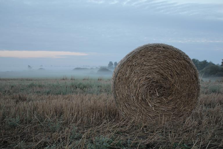 Keywords: field straw harvest summer agriculture village the fog bale nature landscape