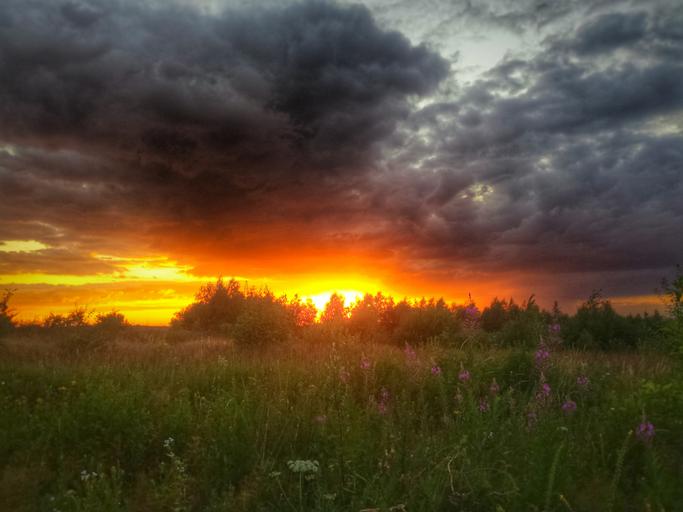 Keywords: field weather clouds west the sun sunset forest tree sky grass summer poland