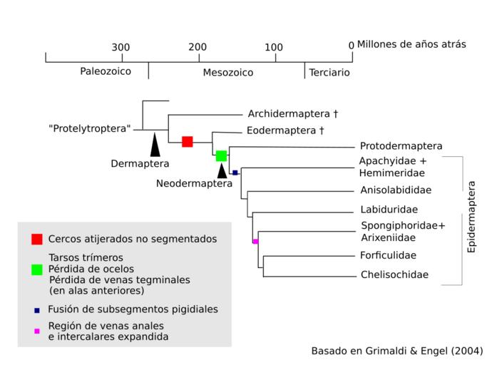 | Keywords: File-DermapteraEvolES.svg  es Ilustración de la filogenia del orden de insectos Dermaptera basada en Grimaldi Engel 2004 Evolution of the Insects Cambridge University Press 2016-01-27 https //commons wikimedia org/wiki/File DermapteraEvol svg https //commons wikimedia org/wiki/User Shyamal other versions cc-zero Dermaptera |
