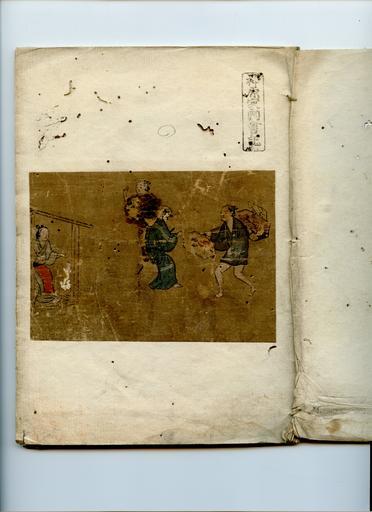 Keywords: File-Wittig.collection.manuscript.01.japanese.art.scrapbook.image.01.page.03.leaf.02.jpg en First image; fragment of a painting street scene with four people including a porter at least one samurai in casual dress with sword another man a housewife standing in her doorway Wittig collection manuscript-01 a Japanese art scrap-book; identified as containing fragments of paintings prints dating from approximately the Sengoku through Edo periods; item 01 of 13 located on page 03 leaf 02 right-to-left 18 or previous all works in this scrapbook date from approximately the Sengoku through Edo periods Scan of manuscript scrap- book Scanned at 12 800 dpi 48 bit colour raw scan with no enchancements compressed jpg Scale reference scan-bed is approximately 14 x 7 ; more precise measurements pending Image could benefit from restoration full set of images could be joined to create an e-book version of original art scrap-book etc author Original PD-old Japanese manuscripts Scrapbooking Paintings of the Edo period Wittig collection manuscript 01 japanese art scrap-book |
