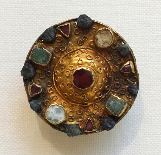 Keywords: Filigree Bossed Disk Brooch, Frankish, 7th century, Niederbreisig, Rheinland Pfalz, bronze with gold overlay, mother of pearl, garnets, green glass, lent by Met. Museum of Art - Chazen Museum of Art - DSC01935.JPG en Exhibit in the Chazen Museum of Art University of Wisconsin-Madison Madison Wisconsin USA This artwork is old enough so that it is in the public domain Photography was permitted in the museum without restriction 2013-07-21 13 13 45 own Daderot cc-zero Medieval art in the Chazen Museum of Art Uploaded with UploadWizard Merovingian fibulae Niederbreisig |