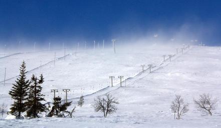 Keywords: finland landscape winter snow ice sky clouds ski lift trees hill slope resort nature outside windy blowing country countryside scenic
