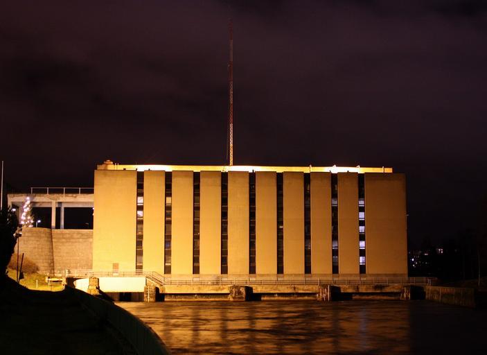 Keywords: finland power plant night evening sky lights lighting outside tower river water reflections energy electricity