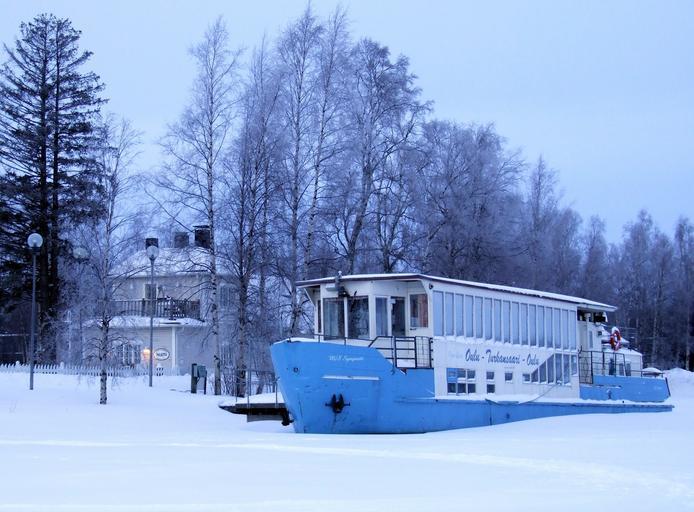 Keywords: finland ship boat house home river water frozen scenic trees winter snow ice nature outside country countryside landscape