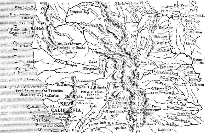 | Keywords: Finley's Map 1826 BHoU-p28.png <font style font-variant small-caps; >Finley's Map 1826 </font> 1200 ppi black white scan of Bancroft's History of Utah 1540 “1886 1889 page 28 created 12 November 2005 - public domain pre-1923 PD-old Old maps of the United States Maps showing the fictive Buenaventura River |