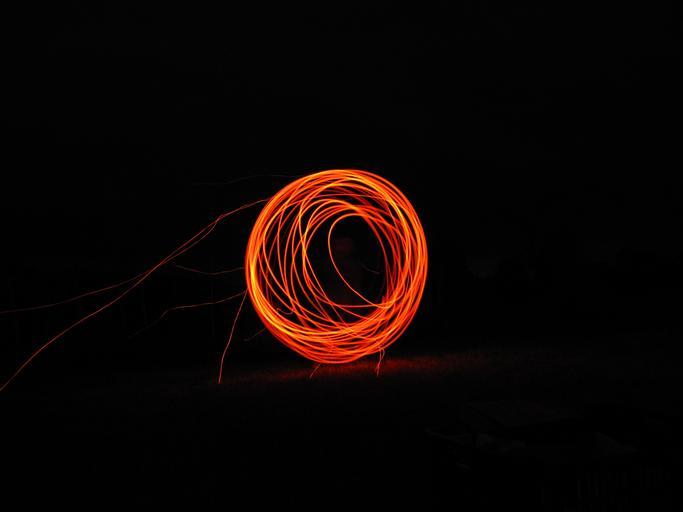 Keywords: fire brand sky flame glow wood fire circle in the evening red art light mystic mood nice at night orange long shutter speed
