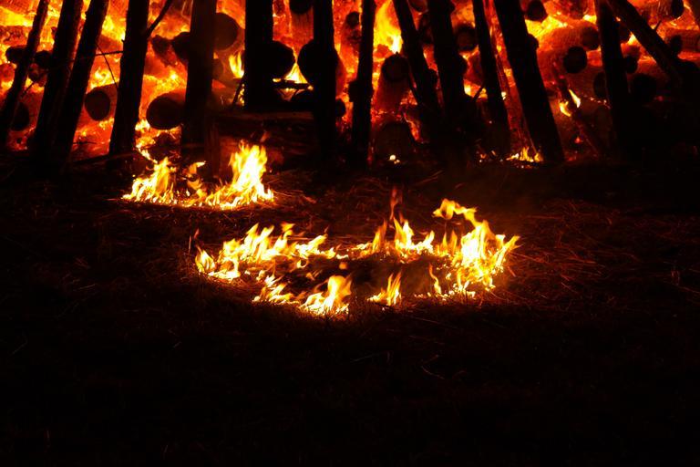 Keywords: fire districts symbolism symbol hot burn fire embers glow wood holzstapel glow oven heat wave midsummer blaze flame red yellow dark night solstice